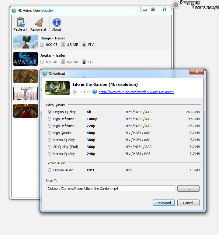 4K Video Downloader – to darmowy program dla systemów Microsoft Windows, Apple Macintosh i Linux który pozwala na pobieranie klipów wideo z takich serwisów jak YouTube, Facebook, Vimeo i Dailymotion.