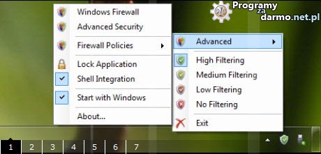 Windows Firewall Control to bezpłatna aplikacja która bardzo upraszcza sterowanie zaporą sieciową ( Firewall ) wbudowaną w systemy Windows Vista i Windows 7, program zapewnia szybki dostęp ( wystarczy kliknąć na ikonkę w zasobniku systemowym ) do najczęściej używanych opcji zapory sieciowej wbudowanej w system Windows oraz kontroluje jej pracę. Dodatkowo wprowadza kilka nowych funkcji zwiększających bezpieczeństwo naszego komputera, za pomocą kilku kliknięć możemy ustawiać blokowanie i zezwalanie programom na dostęp sieci, tworzyć reguły, skonfigurować ustawienia przeglądarki, zaawansowane ustawienia zapory systemowej czy dostęp do zdalnego pulpitu.