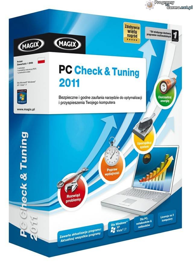 MAGIX PC Check & Tuning 2011 – Niezawodność, szybkość i stabilność to podstawa dla każdego, kto codziennie używa komputera lub notebooka do pracy, przeglądania Internetu, edycji wideo czy do gier. Oprogramowanie PC Check & Tuning 2011 firmy MAGIX prześwietla system operacyjny komputera w poszukiwaniu jego słabych punktów a ponadto naprawia znalezione błędy i poprawia wydajność. Najnowsza wersja zawiera m.in. funkcję aktualizacji oprogramowania oraz tryb HighSpeed i tryb oszczędności energii. Dzięki PC Check & Tuning każdy komputer będzie działał jak nowy, pracował szybko i oszczędzał energię.