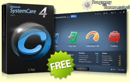 Advanced SystemCare 4 – to pakiet kilkadziesięcu specjalistycznych narzędzi które pomogą utrzymać dobrą kondycję twojego systemu Windows. Advanced SystemCare 4 to program typu „wszystko w jednym”, umożliwiający za pomocą jednego kliknięcia myszką czyszczenie, ochronę, naprawę i optymalizację twojego systemu.Interfejs programu został bardzo dobrze zaprojektowany, jest przejrzysty i intuicyjny dzięki czemu łatwo odnaleźć w nim interesujące nas narzędzia.Obsługa programu jest naprawdę bardzo prosta .
