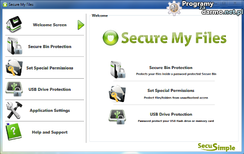Secure My Files – to potężne narzędzie, które pomaga chronić swoje prywatne pliki szybko i bezpiecznie. Z Secure My Files można tworzyć bezpieczne pojemniki ( kontenery ) do szyfrowania plików, ustawić uprawnienia do plików i folderów, zabronić dostępu czy zabezpieczyć hasłem dyski wymienne.