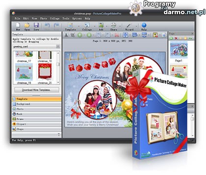 Picture Collage Maker Christmas Edition – to program za pomocą którego z łatwością stworzysz kolaże, kalendarze, pocztówki, zaproszenia, plakaty , fotomontaże i kompozycje z kilku zdjęć. Program obsługuję wszystkie popularne formaty graficzne – m.in. JPG, BMP, TIFF, GIF, WMF, TGA, PNG.