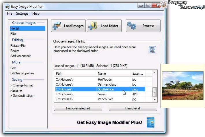 Easy Image Modifier – to proste w obsłudze narzędzie przeznaczone do edycji zdjęć.Dzięki Easy Image Modifier możemy obracać, odwracać, zmieniać format, nazwę, dodać znak wodny,ustawić jakość obrazu, zmienić jego dane bez potrzeby stosowania skomplikowanych programów do edycji zdjęć.