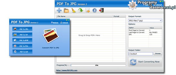 PDF To JPG 2 – to program dla systemów Windows, który szybko konwertuje dokumenty PDF do formatów graficznych, takich jak: JPG, TIF, BMP, PNG i GIF. Użytkownicy mogą dostosować DPI i zakres stron w ustawieniach konwersji. PDF To JPG 2 obsługuje konwersję w trybie wsadowym, co pozwala przekształcać setki dokumentów PDF do formatów zdjęć w tym samym czasie.
