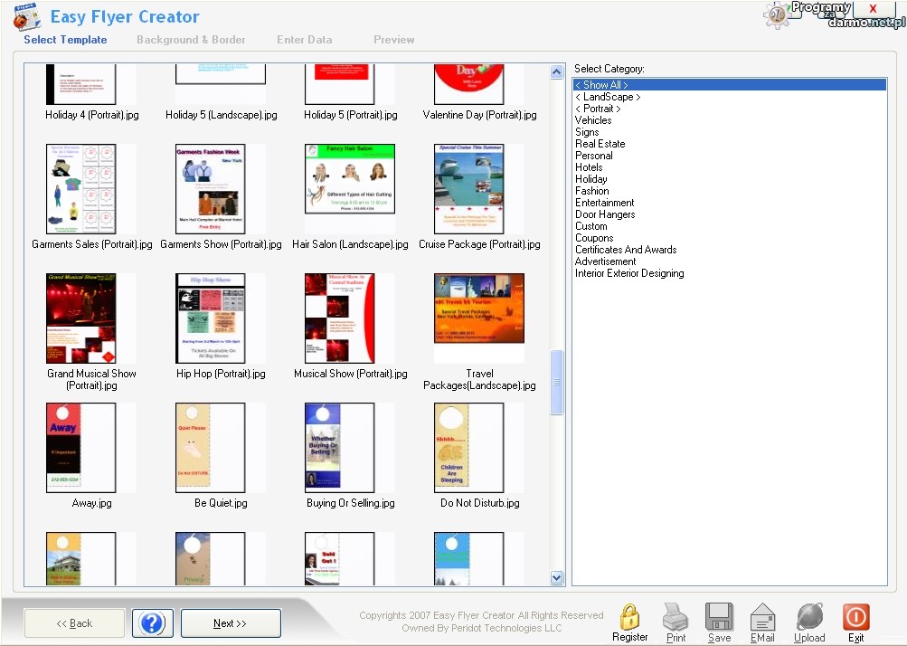 Easy Flyer Creator – to bardzo proste w obsłudze narzędzie służące do projektowania, i drukowania ulotek, biuletynów, broszur, biletów, zawieszek na drzwi itp. Dzięki załączonemu zestawowi szablonów stworzysz własny projekt w zaledwie 5 minut.