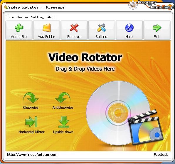 Video Rotator jest aplikacją dla Windows przeznaczoną do obracania klipów wideo.Program obsługuje ponad 15 popularnych formatów wejściowych wideo w tym między innymi AVI, MPG, FLV, MP4, WMV, MOV i 3GP itp.