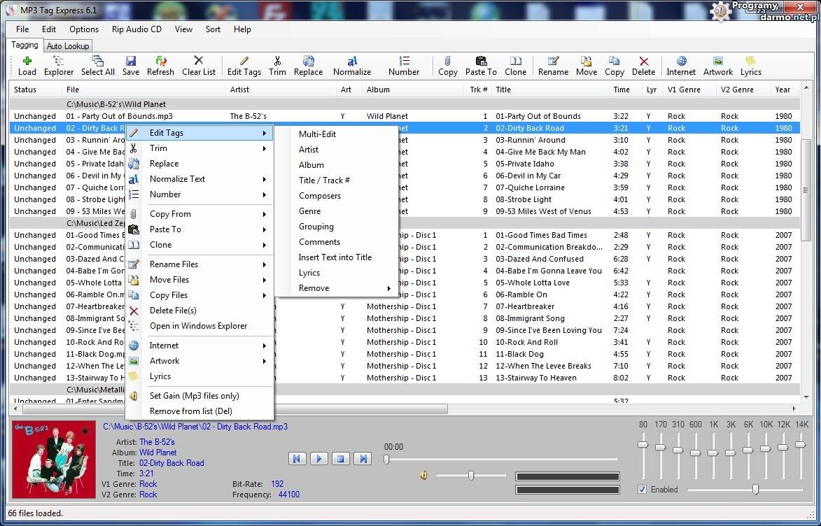 MP3 Tag Express to narzędzie które pozwala szybko i łatwo edytować i naprawić tagi plików muzycznych oraz zmienić ich nazwy. Program bez problemu poradzi sobie z dużą kolekcją plików (hurtowa zmiana) dzięki czemu pozwala zaoszczędzić czas.