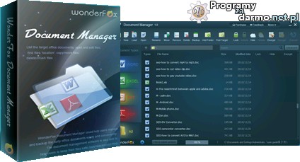 WonderFox Documents Manager – to prosta w obsłudze aplikacja przeznaczona do szybkiego i skutecznego zarządzania oraz klasyfikowania dokumentów.Program pozwala również chronić dokumenty hasłem (szyfrować), zapobiec usunięciu, modyfikacjom oraz ukryć wybrane ważne dokumenty.