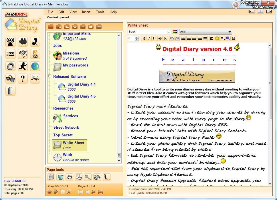 DigitalDiary to narzędzie do pisania pamiętników bez konieczności pisania informacji w plikach tekstowych. Program posiada ciekawe funkcje które pomogą zorganizować czas.