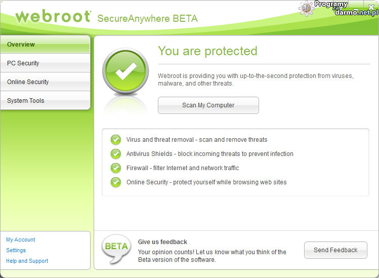 Webroot SecureAnywhere – to kolejny pakiet zabezpieczający nasz komputer przed rootkitami, loggerami, trojanami, wirusami, bootkitami, spyware i innym złośliwym oprogramowaniem. Webroot SecureAnywhere jak to ostatnio w modzie 😛 wykorzystuje technologię chmury – Cloud – dzięki czemu reakcja na najnowsze zagrożenia jest praktycznie natychmiastowa, program jest nieodczuwalny ( po zainstalowaniu u mnie podczas skanowania zużywa niecałe 10MB ), nie spowalnia pracy systemu, skanowanie komputera trwa zaledwie kilka minut.