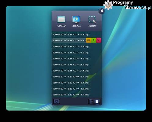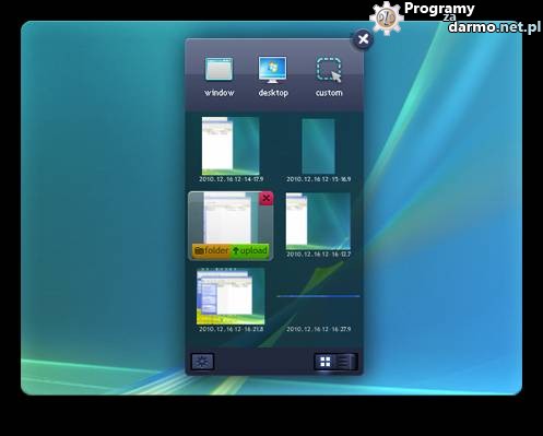 Utworzone zrzuty ekranu wyświetlane są w oknie aplikacji, i możesz przeglądać listę lub miniatury zrzutów ekranu. Najechanie kursorem myszki na zdjęcie pozwala przesyłać obrazy na hosting (po przesłaniu automatycznie otrzymamy gotowy link do zdjęcia), otworzyć katalog ze zdjęciami i / lub usunąć zdjęcie.