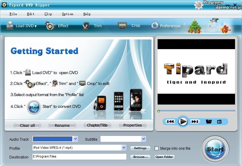 Tipard DVD Ripper – to rozbudowane narzędzie przeznaczone do zgrywania płyt DVD oraz konwertowania do wielu różnych standardów i formatów, umożliwia zapisywanie dźwięku filmu w oddzielnym pliku, pozwala wybrać sceny, które zostaną usunięte podczas konwersji i wiele innych.