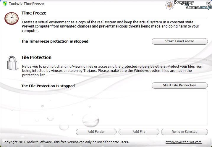 Toolwiz Time Freeze – to nowa, ciekawa aplikacja która pozwala łatwo i skutecznie chronić system Windows przed niepożądanymi zmianami.Program zapewnia bardzo skuteczną ochronę naszego systemu przed różnego rodzaju oprogramowaniem złośliwym ( wirusami, trojanami, oprogramowaniem szpiegującym, keyloggerami itp. )