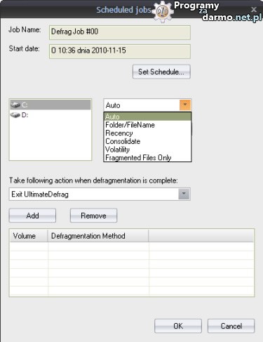6. Auto – teoretycznie tryb dla początkujących (ale nie tylko !!!), na tych ustawieniach program wybierze w miarę optymalną strategię defragmentacji. Zaglądając jednak do ustawień trybu auto napotkamy na dużą liczbę możliwych ustawień – można dostroić automatykę do własnych potrzeb i wymagań.