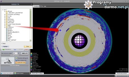 Program pozwala również na dokładne umieszczenie pliku czy folderu w wybranym przez nas fizycznym miejscu na dysku, wystarczy go przeciągnąć w wybrane miejsce: