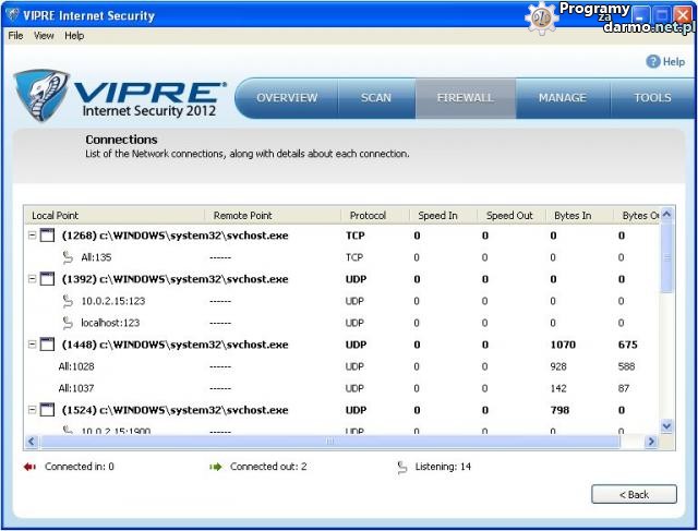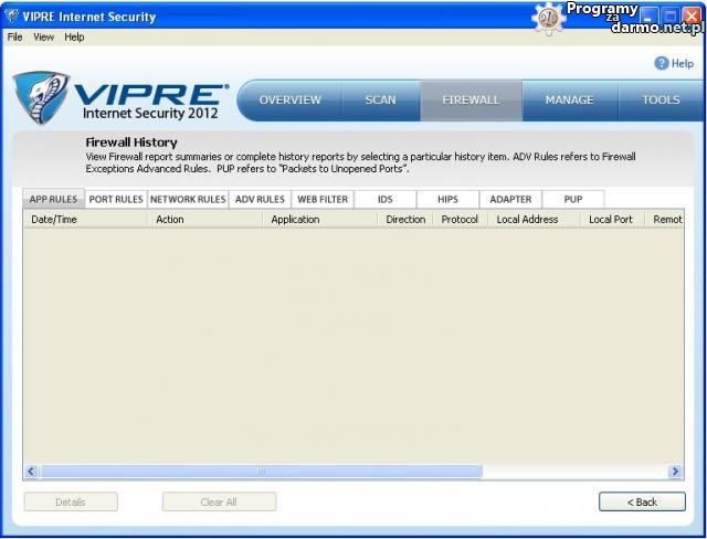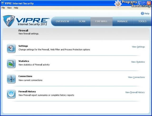 Wbudowany Firewall w VIPRE Internet Security 2012 jest automatycznie skonfigurowany i łatwy w użyciu, chroniąc natychmiast przychodzący i wychodzący ruch internetowy. Bardziej doświadczeni użytkownicy mogą dostosować ustawienia Firewalla do swoich potrzeb.