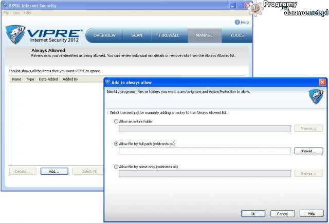 Always Allowed – czyli tak zwane wykluczenia, wszystko co dodamy do wykluczeń będzie miało pozwolenie na wykonywanie działań więc radzę zwrócić szczególną uwagę na to co dodajemy do wykluczeń.