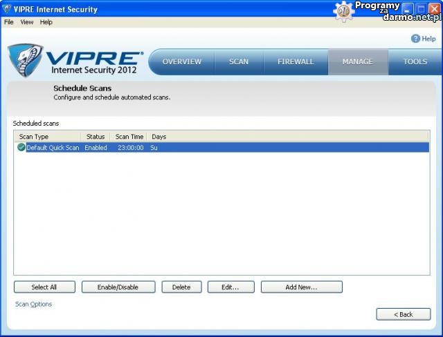 Schedule Scans – tworzenie zaplanowanych zadań skanowania komputera, do wyboru kilka trybów skanowania o dowolnie wybranym dniu i godzinie.