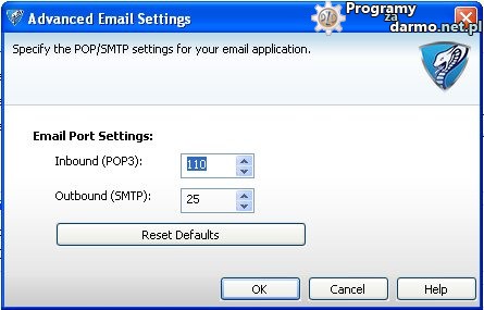 W ustawieniach zaawansowanych ochrony wiadomości e-mail możemy wybrać porty dla poczty wychodzącej i przychodzącej oraz przywrócić domyślne ustawienia.