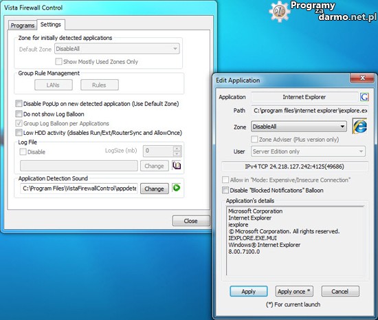 Windows 7 Firewall Control – to bezpłatna wersja programu który rozbudowuje możliwości zapory wbudowanej w systemy Windows 7 i Vista ( dostępna jest także wersja dla systemu Windows XP ).Windows 7 Firewall Control kontroluje pracę systemowej zapory oraz wprowadza kilka dodatkowych funkcji zwiększających bezpieczeństwo, zapewnia szybki dostęp do najczęściej używanych opcji zapory poprzez ikonkę w zasobniku systemowym ( trayu )