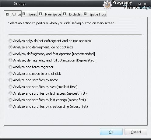 WinUtilities Free Disk Defragmenter pozwala wybrać które dyski twarde/partycje chcemy poddać procesowi defragmentacji, wybrać tryb defragmentacji, ustalić szybkość procesu defragmentacji, wybrać które pliki foldery mają być wykluczone z procesu defragmentacji, zatrzymywać, pauzować, wznawiać proces defragmentacji i wiele więcej.Obsługa programu jest bardzo prosta, po uruchomieniu wybieramy dysk/partycję i klikamy przycisk DEFRAG, po zakończeniu zostanie wyświetlony szczegółowy raport.