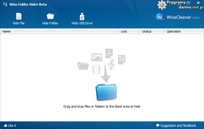Wise Hider Folder to bezpłatna aplikacja do ukrywania plików / folderów. Użytkownik może użyć programu do ukrywania plików i folderów na lokalnych partycjach lub nośnikach wymiennych takich jak pamięci przenośnie, karty SD itp.Po ukryciu plików/folderów jedynym sposobem, aby uzyskać do nich dostęp (odkryć) jest wprowadzenie poprawnego hasła.