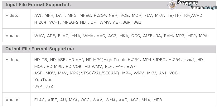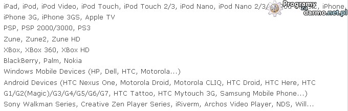 Program wspiera większość przenośnych urządzeń multimedialnych ![]()